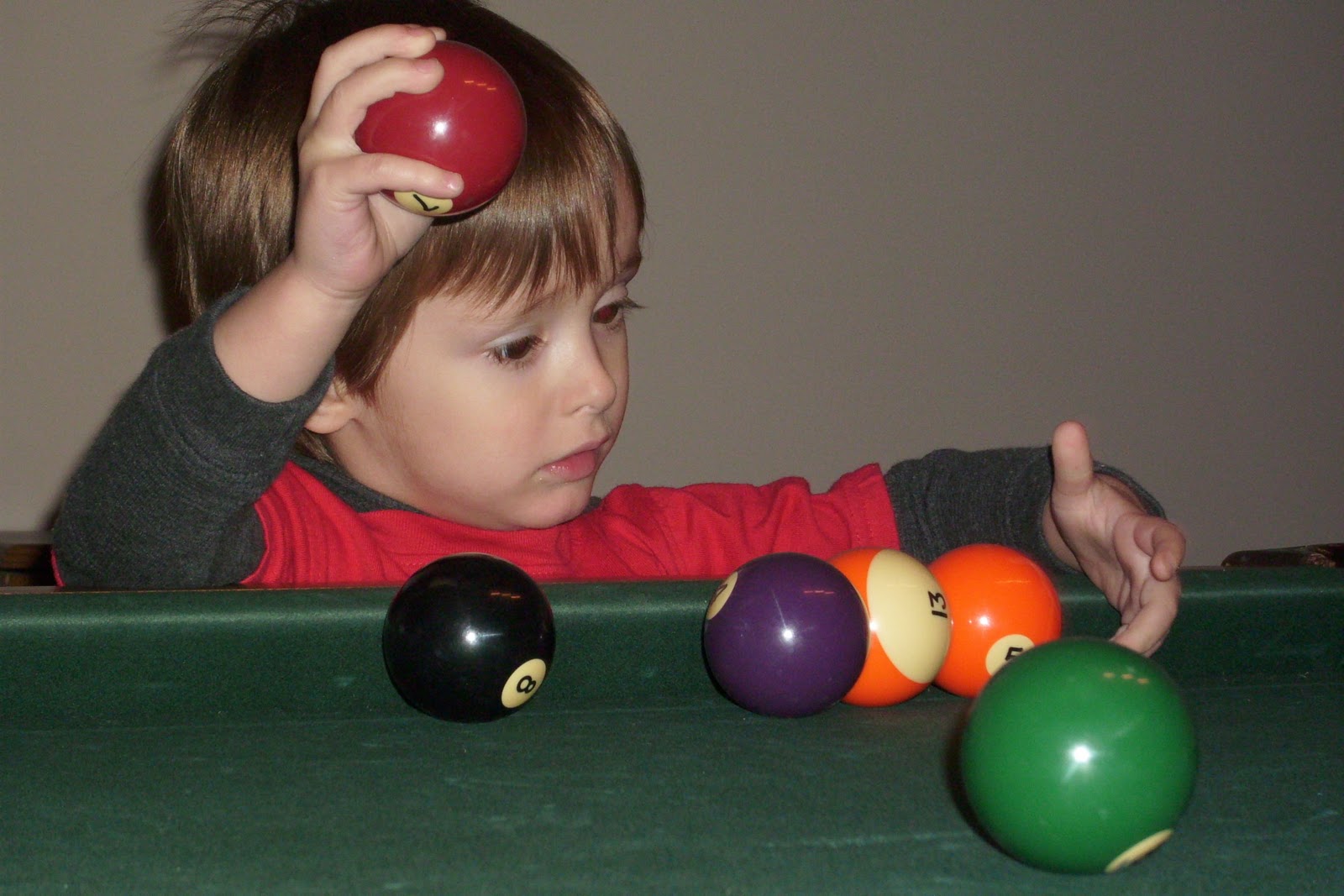 We stayed with Chris's parents while we were in town and Chris got a little practice in on their table.